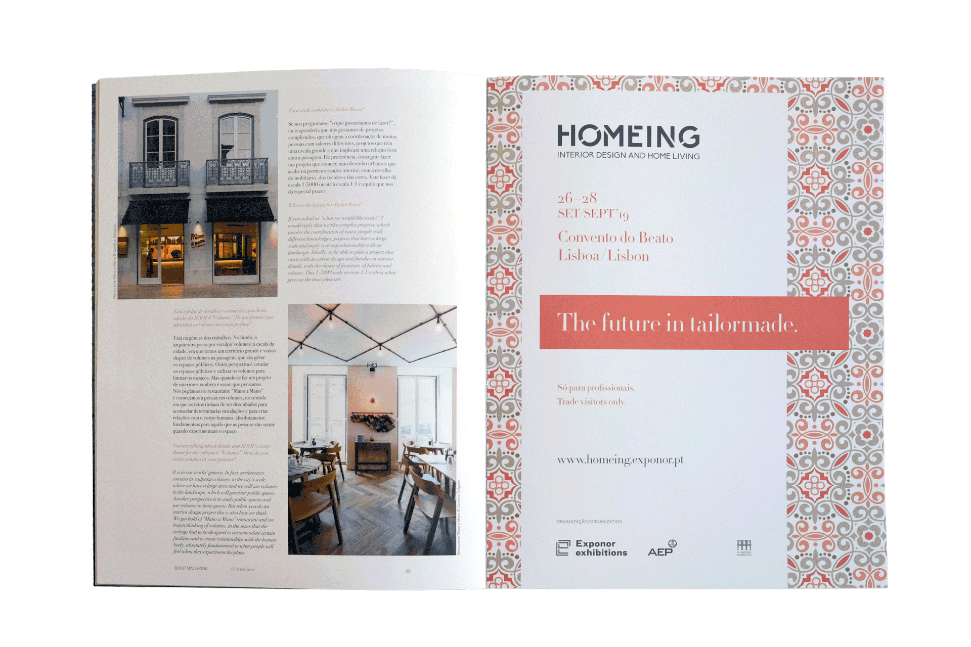 2019 . Fotografias “Restaurante Mano a Mano / RISCO”, Revista ROOF n.º 21 BIMESTRAL / JULHO - AGOSTO 2019.