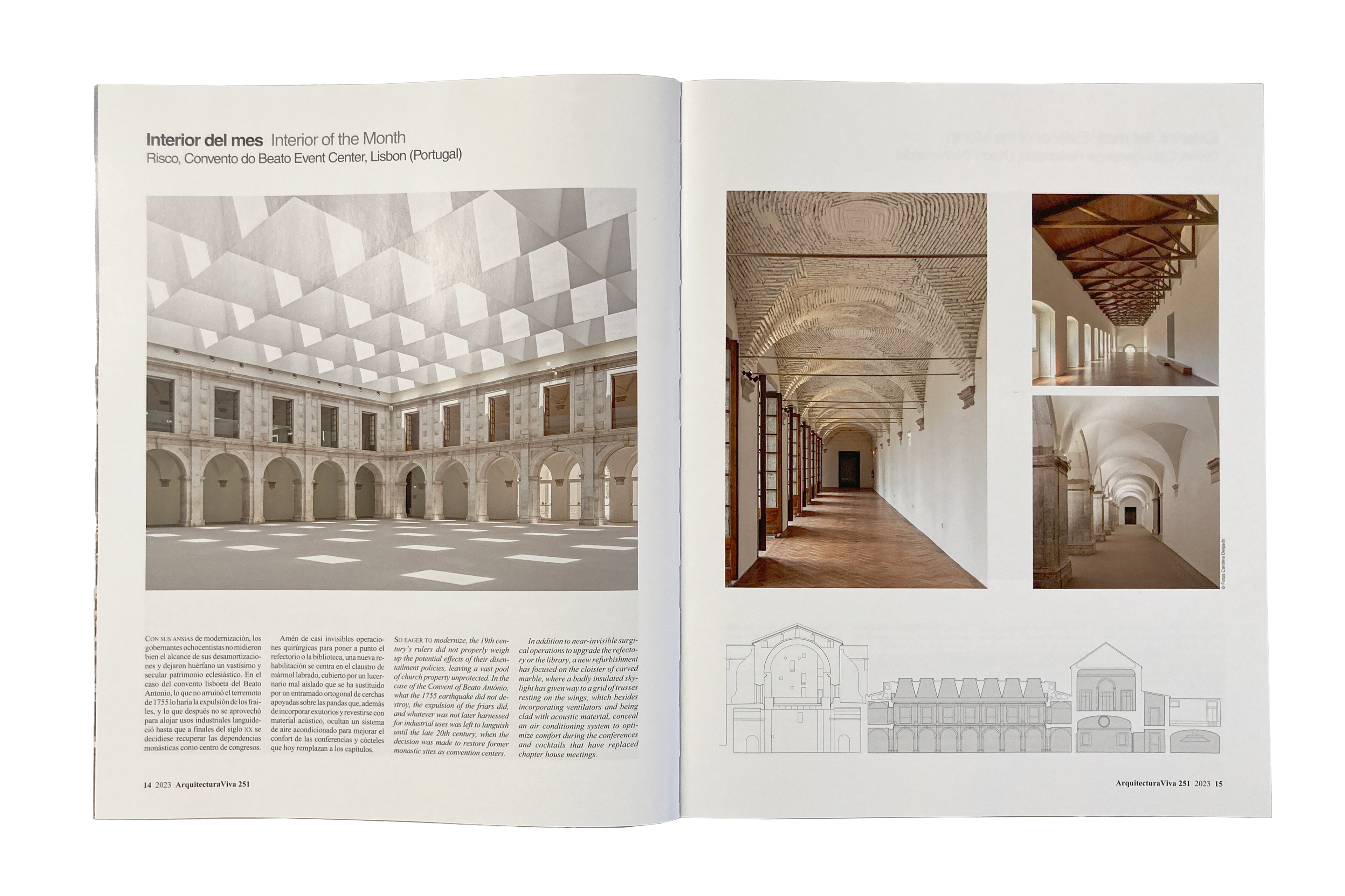 2023 . Fotografias “Centro de Eventos do Convento do Beato / RISCO” nomeado "interior do mês”, Revista Arquitectura Viva nº251, Janeiro-Fevereiro 2023.